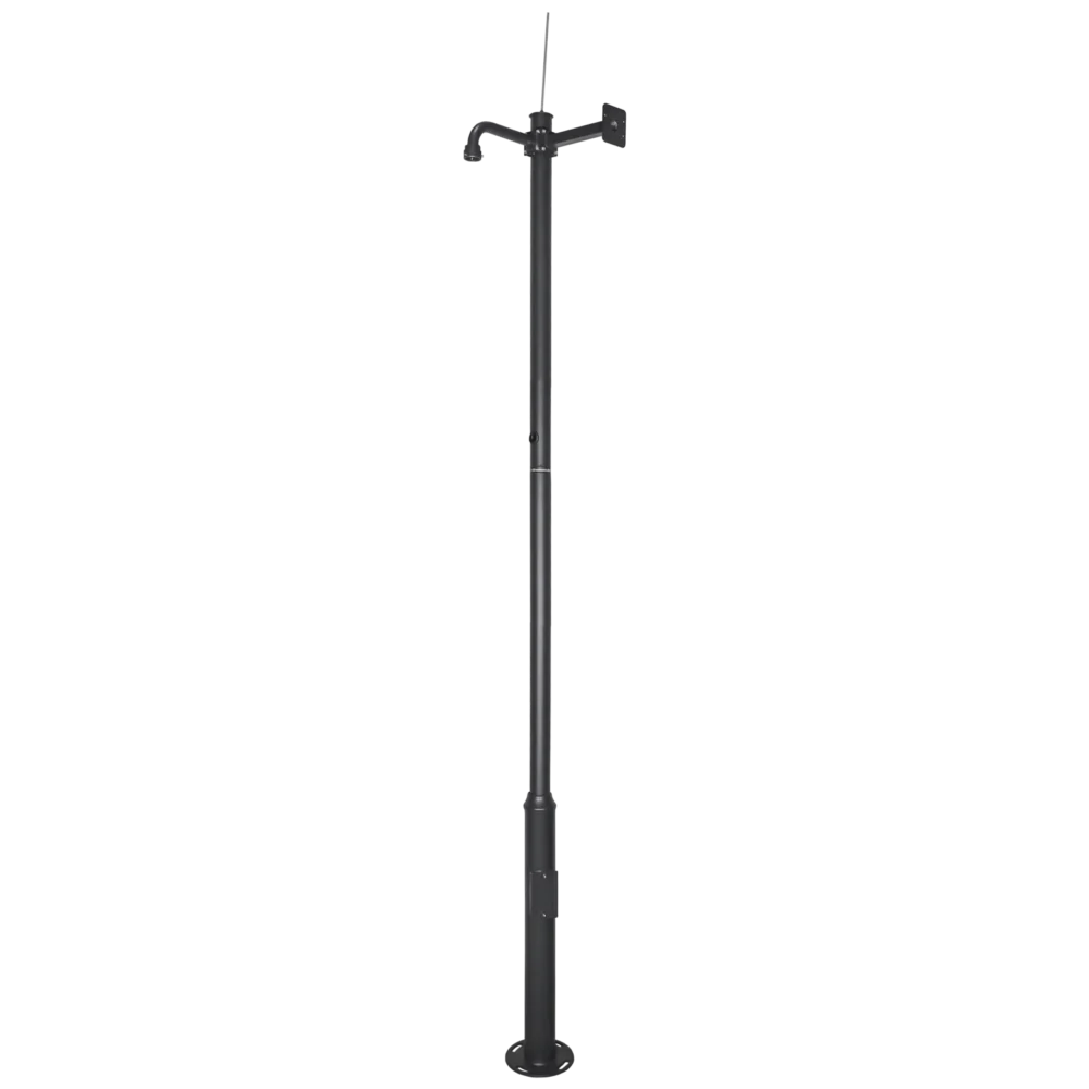 • Material e dimensões: Dimensões: 3500 (alto) x 114/116 (diâmetro) x 1.8 (espessura) mm; Material: Aço Galvanizado; Peso líquido: 19000 g; Cor: Grafito; Dimensiones placa base para enterrar: 180 x 180 mm