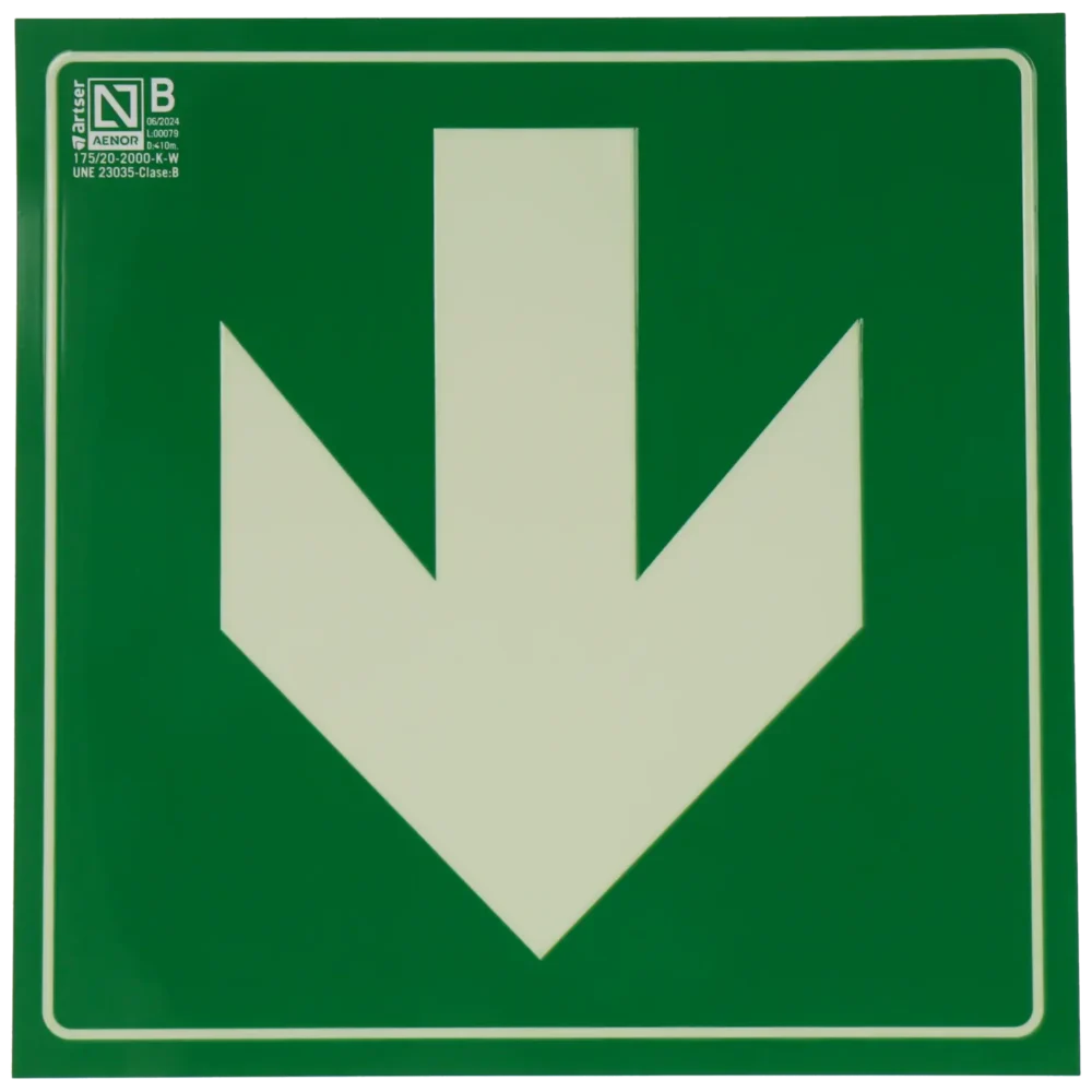 - Características: Distancia legibilidad: Hasta 10 metros (instalado entre 2 y 2.5 m); Tratamiento antigrafiti: Sim; Luminancia a los 10 min: 175 mcd / m²; Luminancia a los 60 min: 20 mcd / m²; Tiempo de atenuación: 2000 min