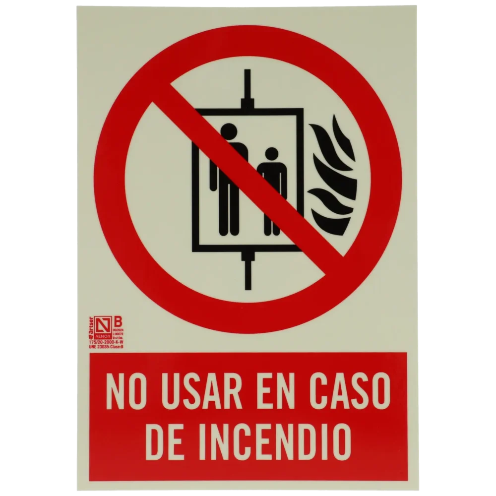 Cartel no usar en caso de incendio