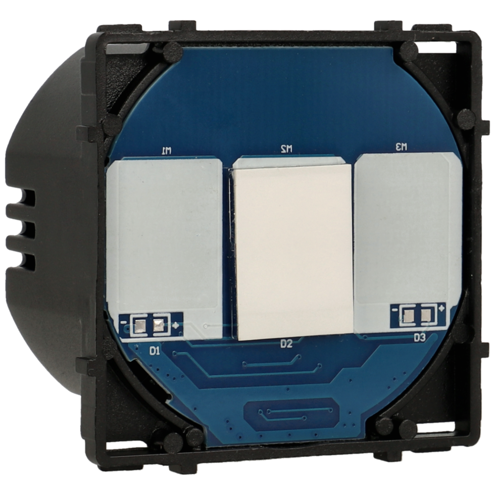 • Especificações (interruptores): Retroiluminação: Sim; Conexión eléctrica: Solo con cable fase; Ajuste de intensidad lumínica: Sim; Panel táctil: Sim; Recuperación de estado tras fallo eléctrico: Sim; Ciclo de vida: 100000 ciclos