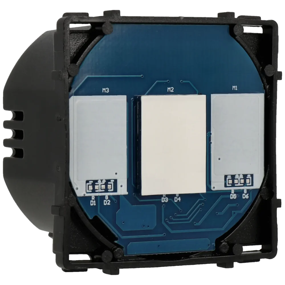 - Especificações (interruptores): Retroiluminação: Sim; Conexión eléctrica: Solo con cable fase; Panel táctil: Sim; Recuperación de estado tras fallo eléctrico: Sim; Ciclo de vida: 100000 ciclos