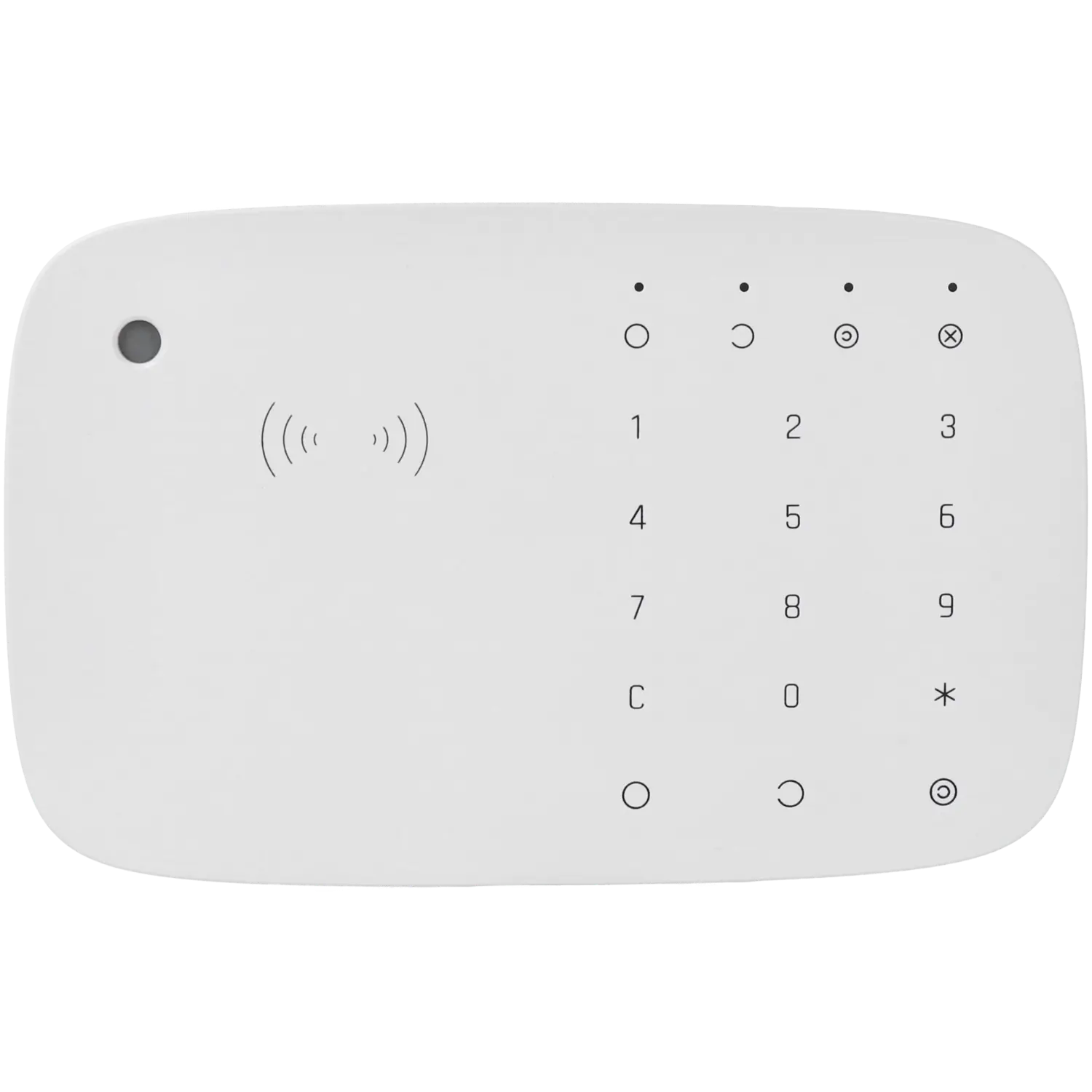 - Funções (teclados): Função armado: Sim; Função desarmado: Sim; Teclas funcionais: 15; Som: Alto-falante integrado; Lector de proximidad: Sim, DESFire®; Alarme de coação: Sim; Alarme de sabotagem: Sim; Sirena: Sim